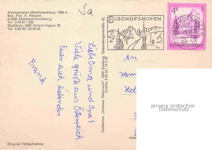 74132266 alte Postkarte Muehlbach Hochkoenig Pinzgau-Pongau AT Alpenpension Mandlwandhaus postalisch gelaufen Erhaltung siehe scans [WerneD78] KatCode: 11390322050415