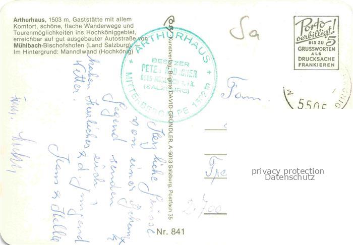 74132268 alte Postkarte Muehlbach Hochkoenig Pinzgau-Pongau AT Arthurhaus Gaststaette postalisch gelaufen Erhaltung siehe scans [WerneD78] KatCode: 11390322050415