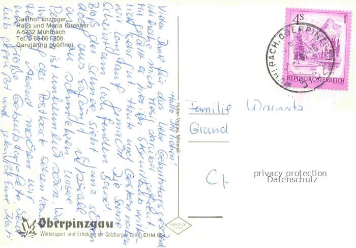 74137758 alte Postkarte Muehlbach Hochkoenig Pinzgau-Pongau AT Gasthof Enzinger Gastraum Wintersport Alpen postalisch gelaufen Erhaltung siehe scans [FriedD77] KatCode: 11390322050415