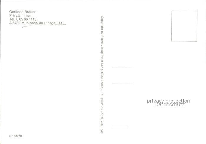 72483702 Muehlbach Hochkoenig Privatpension Gerlinde Braeuer postalisch nicht gelaufen Erhaltung siehe scans KatCode: 11390322050415