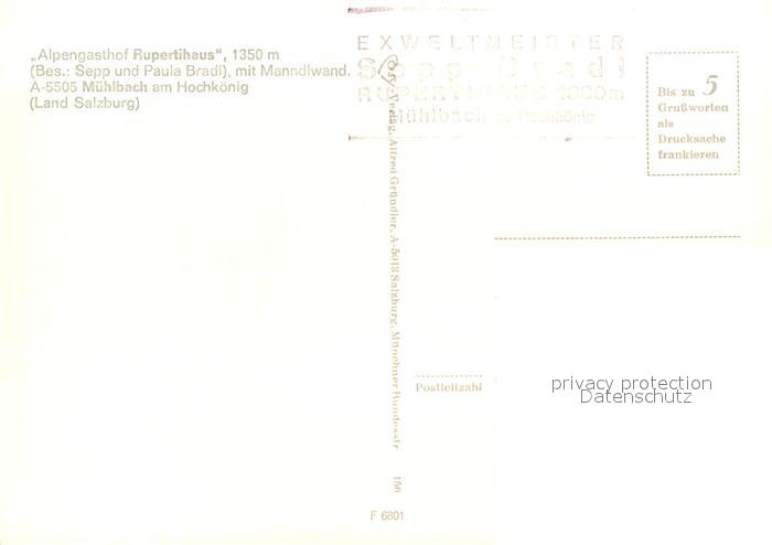 73290669 Muehlbach Hochkoenig Rupertihaus Gasthof postalisch nicht gelaufen Erhaltung siehe scans [LiesaD40] KatCode: 11390322050415