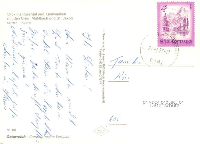 73360420 alte Postkarte Muehlbach Rosental Panorama Rosental mit Karawanken Fliegeraufnahme postalisch gelaufen Erhaltung siehe scans [FriedD77] KatCode: 11390211020722