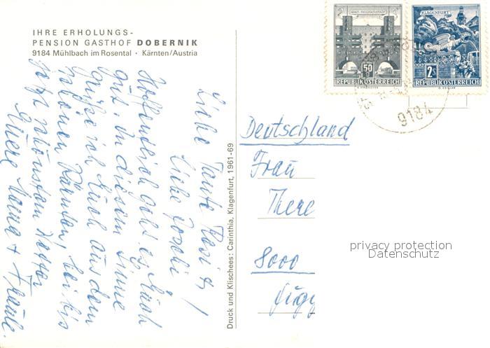 13009067 alte Postkarte Muehlbach Rosental Pension Dobernik postalisch gelaufen Erhaltung siehe scans [NatalD47] KatCode: 11390211020722