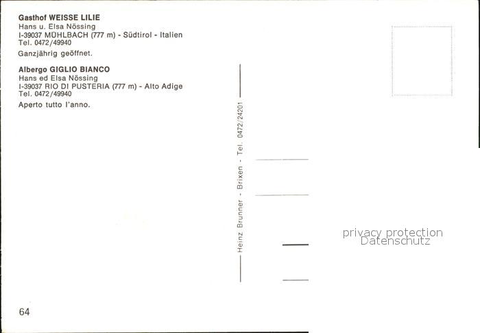 Muehlbach Suedtirol Gasthof Weisse Lilie postalisch nicht gelaufen Erhaltung siehe scans [KathaD79]