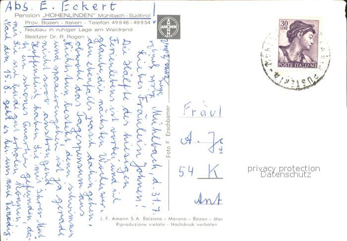 old postcard Muehlbach Suedtirol Pension Hohenlinden postalisch gelaufen Erhaltung siehe scans