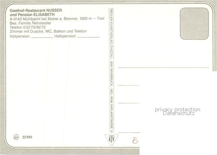 73785768 Muehlbachl Gasthof Restaurant Nusser und Pension Elisabeth postalisch nicht gelaufen Erhaltung siehe scans [WerneD78] KatCode: 11390332070330