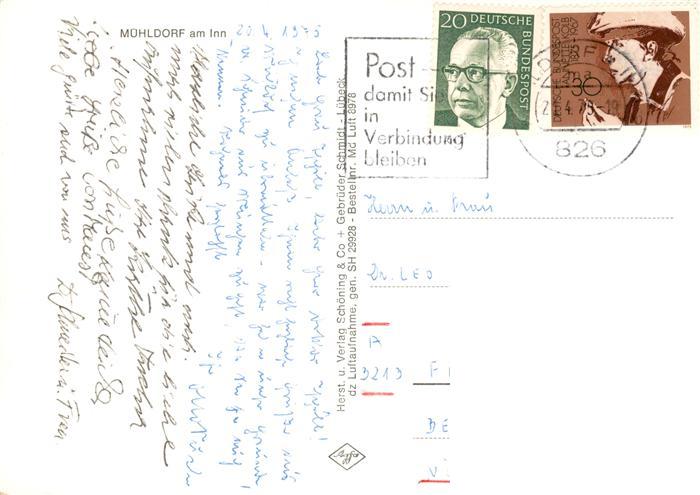 73892196 alte Postkarte Muehldorf Inn Fliegeraufnahme mit Innschleife postalisch gelaufen Erhaltung siehe scans [FriedD77] KatCode: 11110009183128