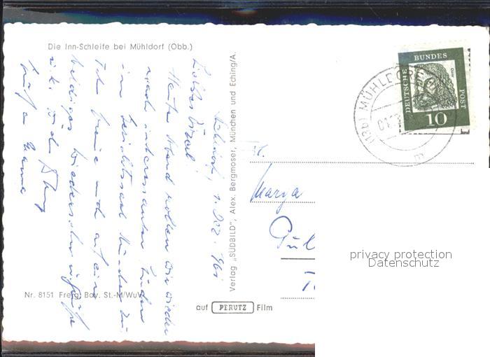 72142208 alte Postkarte Muehldorf Inn Inn Schleife Fliegeraufnahme postalisch gelaufen Erhaltung siehe scans KatCode: 11110009183128