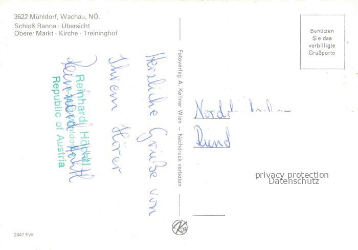 74153169 Muehldorf Niederoesterreich AT Schloss Ranna Panorama Oberer Markt Kirche Treininghof postalisch nicht gelaufen Erhaltung siehe scans [WerneD78] KatCode: 11390124031330