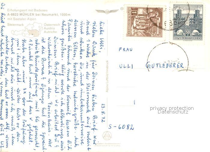 73367128 alte Postkarte Muehlen Steiermark Fliegeraufnahme mit Zirbitzkogel postalisch gelaufen Erhaltung siehe scans [WerneD78] KatCode: 11390226061410