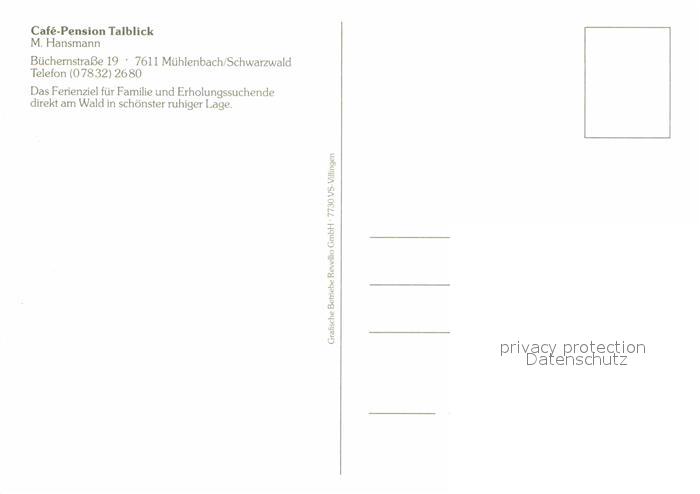 72677701 Muehlenbach Baden Cafe Pension Talblick im Schwarzwald Touristenbahn postalisch nicht gelaufen Erhaltung siehe scans [FriedD77] KatCode: 11110008317078