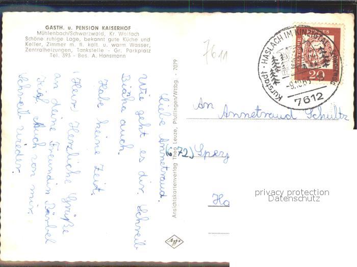 41976914 alte Postkarte Muehlenbach Baden Gasthaus Pension Kaiserhof Gastraeume postalisch gelaufen Erhaltung siehe scans KatCode: 11110008317078