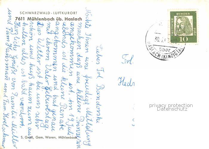 72811497 alte Postkarte Muehlenbach Baden Panorama Luftkurort im Schwarzwald postalisch gelaufen Erhaltung siehe scans [FriedD77] KatCode: 11110008317078