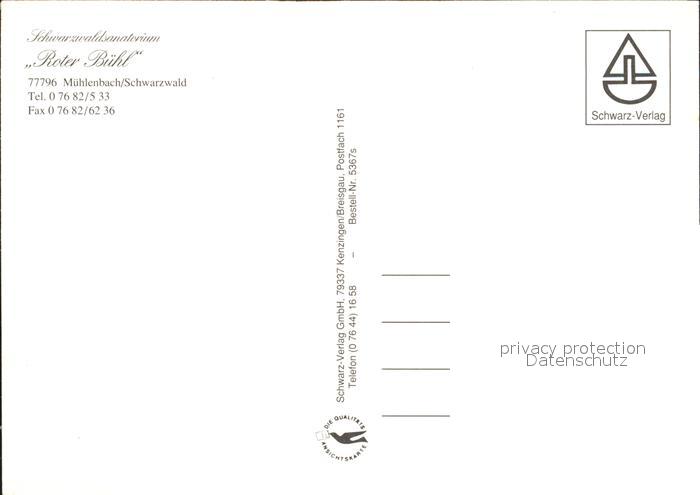 72285609 Muehlenbach Baden Schwarzwaldsanatorium Roter Buehl postalisch nicht gelaufen Erhaltung siehe scans KatCode: 11110008317078