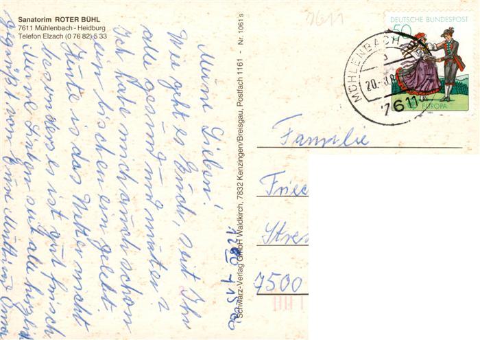 73928617 alte Postkarte Muehlenbach Wolfach Kinzigtal Baden Sanatorium Roter Buehl postalisch gelaufen Erhaltung siehe scans [FriedD77] KatCode: 11110008317078