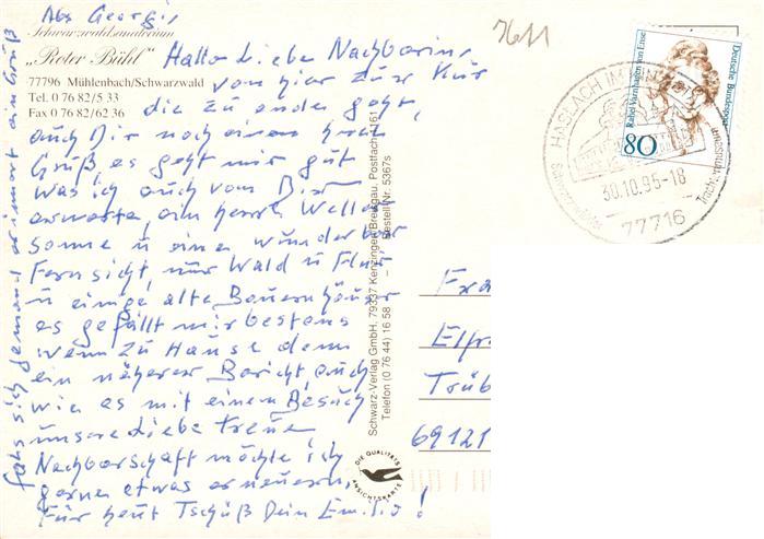 73928918 alte Postkarte Muehlenbach Wolfach Kinzigtal Baden Schwarzwaldsanatorium Roter Buehl postalisch gelaufen Erhaltung siehe scans [FriedD77] KatCode: 11110008317078