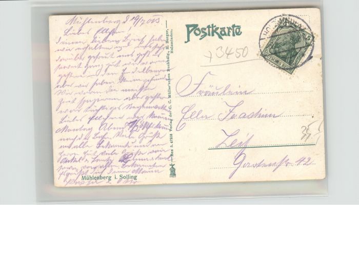 40882253 alte Postkarte Muehlenberg postalisch gelaufen KatCode: