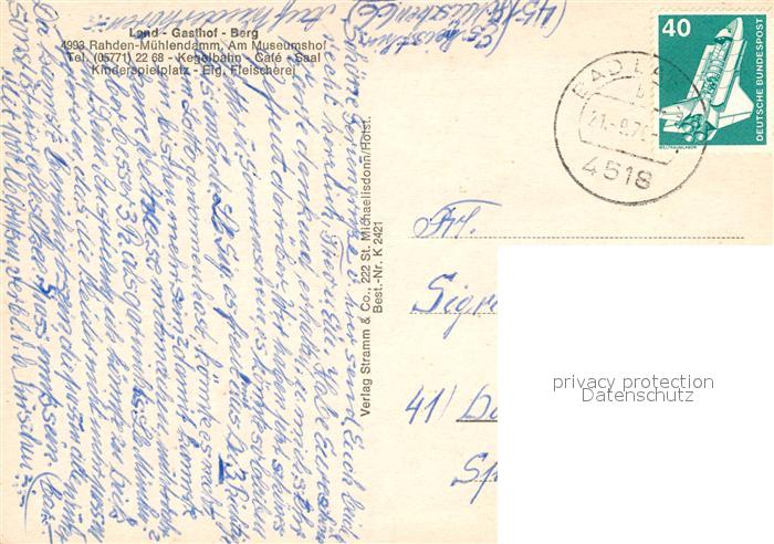 73086667 alte Postkarte Muehlendamm Westfalen Land-Gasthof-Berg postalisch gelaufen Erhaltung siehe scans [NatalD47] KatCode: 11110005770040