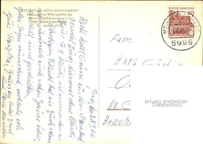 72566657 alte Postkarte Muehlenrahmede Bergheim postalisch gelaufen Erhaltung siehe scans [LiesaD40] KatCode: 11110005962004