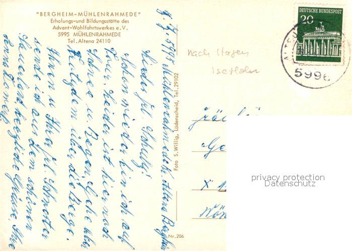 73019479 alte Postkarte Muehlenrahmede Bergheim Muehlenrahmede postalisch gelaufen Erhaltung siehe scans [NatalD47] KatCode: 11110005962004
