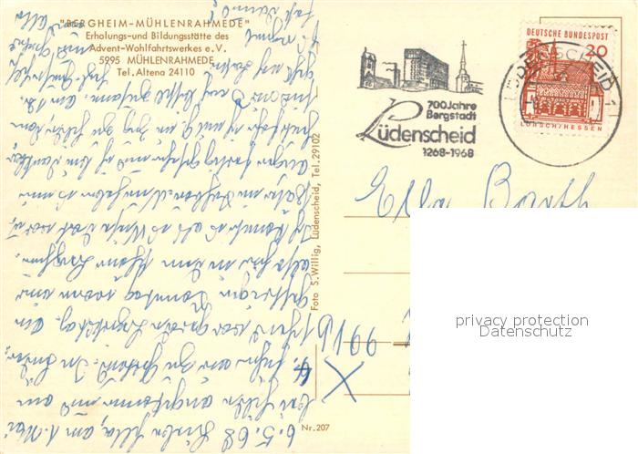 73667195 alte Postkarte Muehlenrahmede Bergheim Muehlenrahmede postalisch gelaufen Erhaltung siehe scans [WerneD78] KatCode: 11110005962004