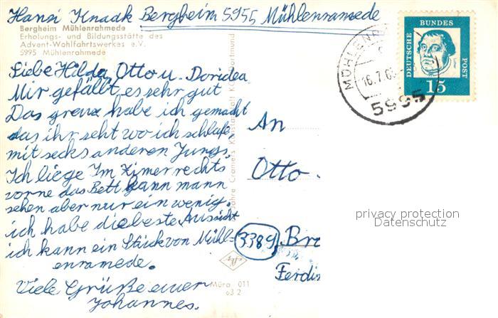 73080031 alte Postkarte Muehlenrahmede Bergheim postalisch gelaufen Erhaltung siehe scans [FriedD77] KatCode: 11110005962004
