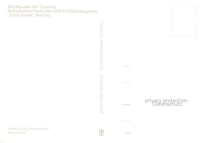 73866884 Muehlhausen Bad Elster Vogtland Betriebsferienheim des VEB Kraftfahrzeugwerk Ernst Grube Werdau postalisch nicht gelaufen Erhaltung siehe scans [WerneD78] Wern Katcode 11110014178050
