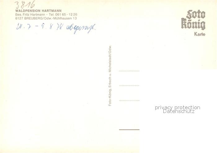 73324341 Muehlhausen Odenwald Waldpension Hartmann postalisch nicht gelaufen Erhaltung siehe scans [FriedD77] KatCode: 11110006437004