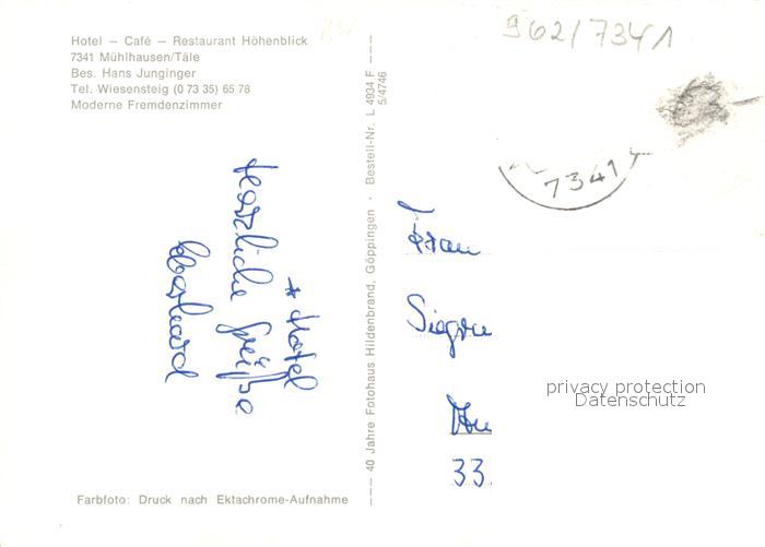 73051588 alte Postkarte Muehlhausen Taele Fliegeraufnahme postalisch gelaufen Erhaltung siehe scans [NatalD47] KatCode: 11110008117035