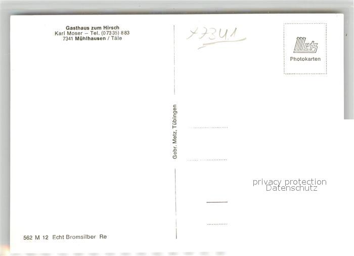 43292130 Muehlhausen Taele Gasthaus zum Hirsch postalisch nicht gelaufen Erhaltung siehe scans [KathaD81] KatCode: 11110008117035