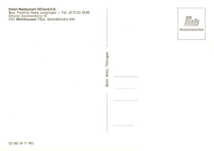 73887231 Muehlhausen Taele Hotel Restaurant Hoehenblick Gastraeume Panorama postalisch nicht gelaufen Erhaltung siehe scans [WerneD78] KatCode: 11110008117035