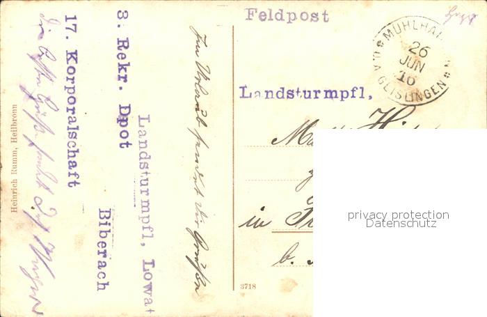 31722204 alte Postkarte Muehlhausen Taele postalisch gelaufen Feldpost Erhaltung siehe scans KatCode: 11110008117035