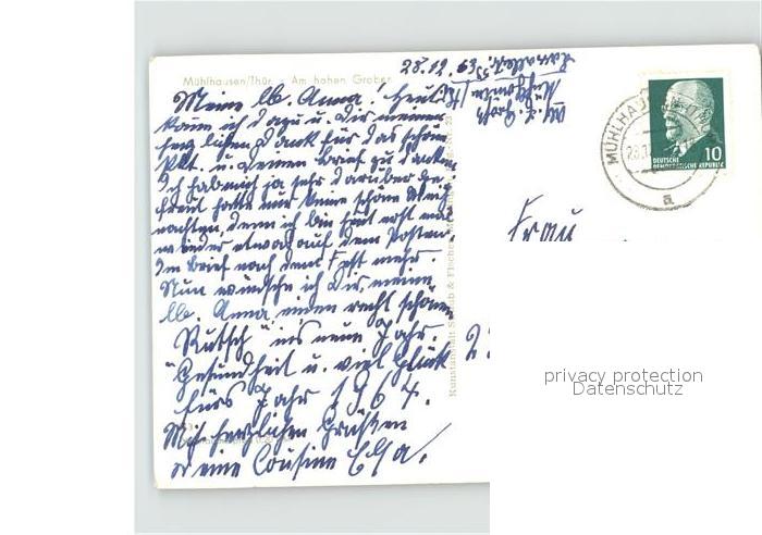 71900203 alte Postkarte Muehlhausen Thueringen Am hohen Graben postalisch gelaufen Erhaltung siehe scans KatCode: 11110016064046