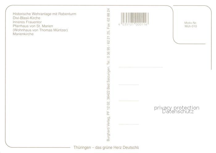 73209175 Muehlhausen Thueringen Divi-Blasii-Kirche Pfarrhaus St. Marien Ratenturm postalisch nicht gelaufen Erhaltung siehe scans [NatalD47] KatCode: 11110016064046