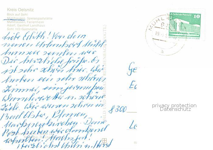 72843957 alte Postkarte Muehlhausen Thueringen Erholungsgebiet Sohl postalisch gelaufen Erhaltung siehe scans [AndreD76] KatCode: 11110016064046
