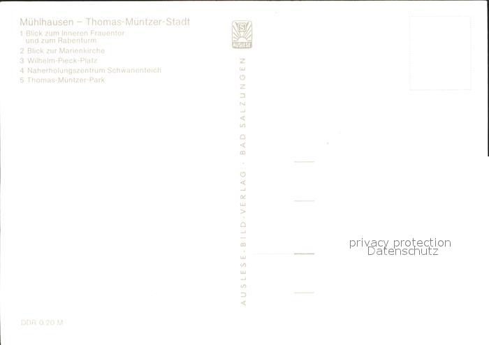 72922489 Muehlhausen Thueringen Frauentor Rabenturm Marienkirche Wilhelm-Pieck-Platz postalisch nicht gelaufen Erhaltung siehe scans [NatalD47] KatCode: 11110016064046
