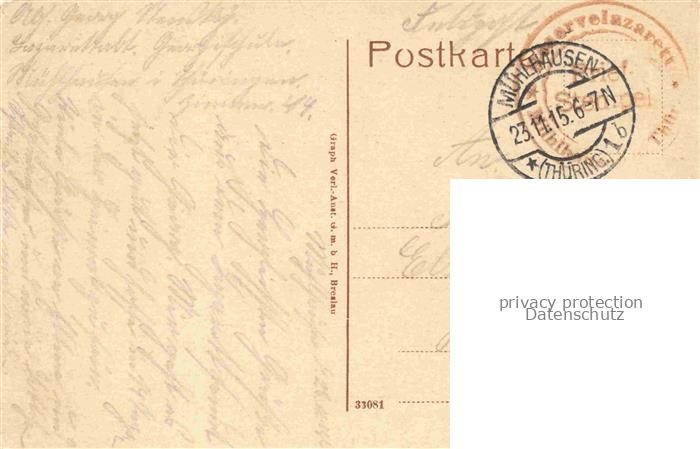 74010772 alte Postkarte Muehlhausen Thueringen Georgen-Schule Lazarett-Stempel postalisch gelaufen Feldpost – Stempel Erhaltung siehe scans [FriedD77] KatCode: 11110016064046
