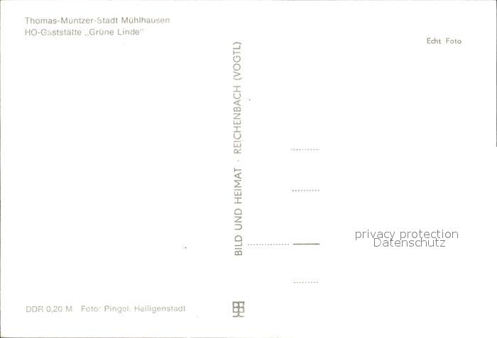 72069649 Muehlhausen Thueringen HO Gaststaette Gruene Linde Thomas Muentzer Stadt postalisch nicht gelaufen Erhaltung siehe scans KatCode: 11110016064046