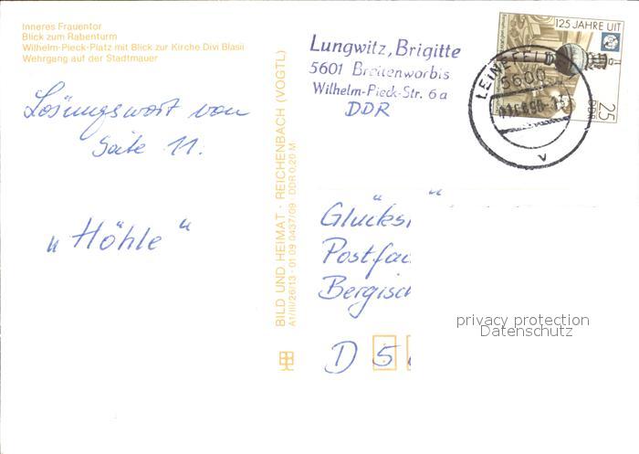 72401232 alte Postkarte Muehlhausen Thueringen Inneres Frauentor Blick Rabenturm Kirche Divi Blasi Wehrgang postalisch gelaufen Erhaltung siehe scans KatCode: 11110016064046