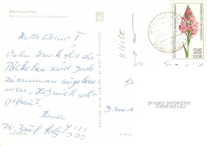 72819288 alte Postkarte Muehlhausen Thueringen Schwanenteich postalisch gelaufen Erhaltung siehe scans [KathaD81] KatCode: 11110016064046