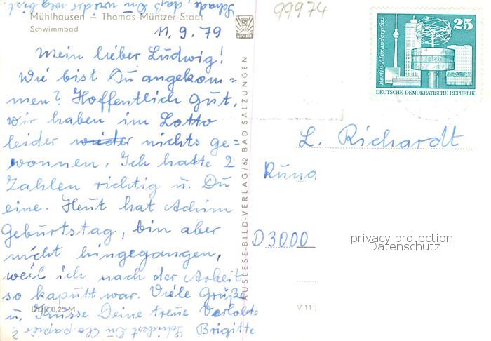 73854119 alte Postkarte Muehlhausen Thueringen Schwimmbad postalisch gelaufen Erhaltung siehe scans [WerneD78] KatCode: 11110016064046