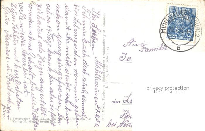 72357429 alte Postkarte Muehlhausen Thueringen Stadtblick vom Ehrenmal postalisch gelaufen Erhaltung siehe scans KatCode: 11110016064046