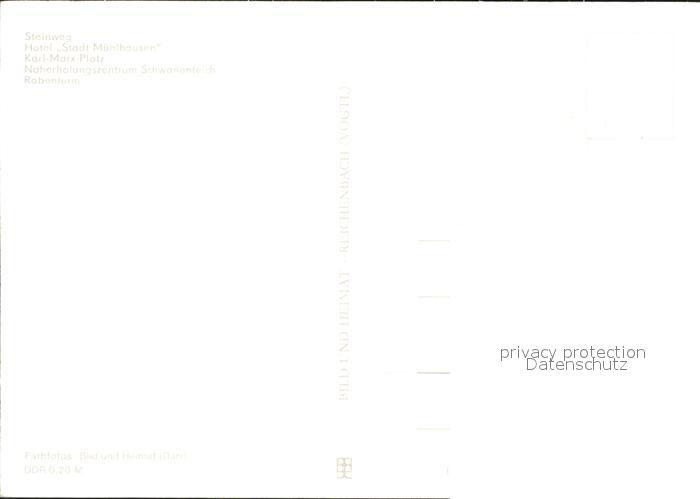 72373176 Muehlhausen Thueringen Steinweg Hotel Stadt Muehlhausen Karl Marx Platz Naherholungszentrum Schwanenteich Rabenturm Thomas Muentzer Stadt postalisch nicht gelaufen Erhaltung siehe scans KatCode: 11110016064046