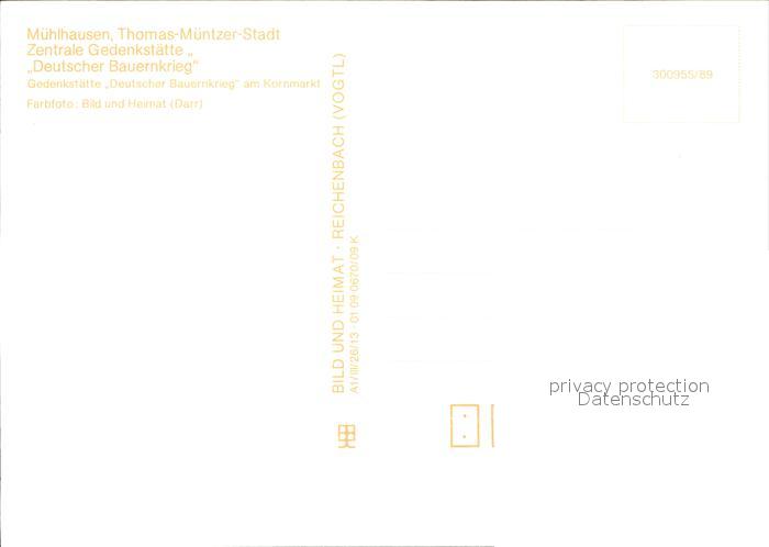 72548596 Muehlhausen Thueringen Thoma-Muentzer-Stadt Gedenkstaette Deutscher Bauernkrieg postalisch nicht gelaufen Erhaltung siehe scans [LiesaD40 kv019box] KatCode: 11110016064046