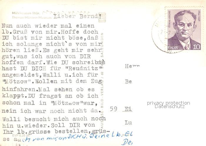 73163167 alte Postkarte Muehlhausen Thueringen Thomas Muentzer Museum postalisch gelaufen Erhaltung siehe scans [WerneD78] KatCode: 11110016064046