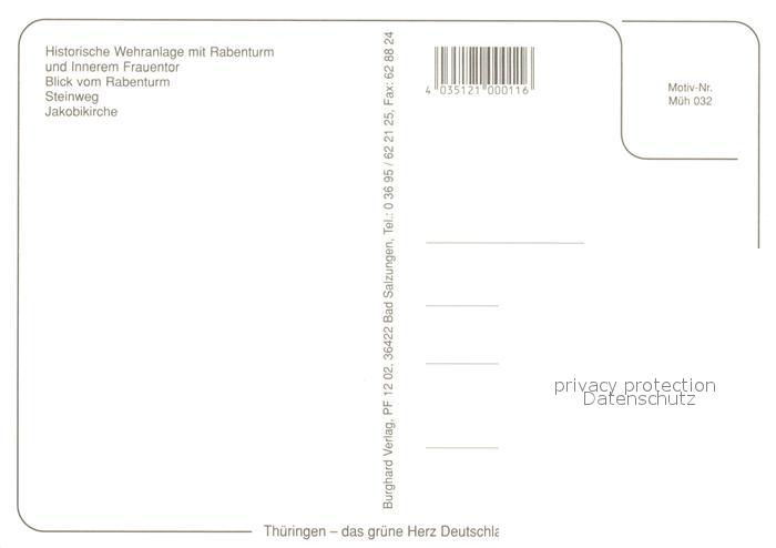 73230828 Muehlhausen Thueringen Wehranlage mit Rabenturm Frauentor Rabenturm Steinweg Jakobikirche postalisch nicht gelaufen Erhaltung siehe scans [LiesaD40] KatCode: 11110016064046