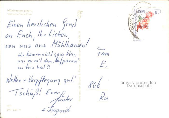 71868048 alte Postkarte Muehlhausen Thueringen Wilhelm Pieck Platz Kirche postalisch gelaufen Erhaltung siehe scans KatCode: 11110016064046