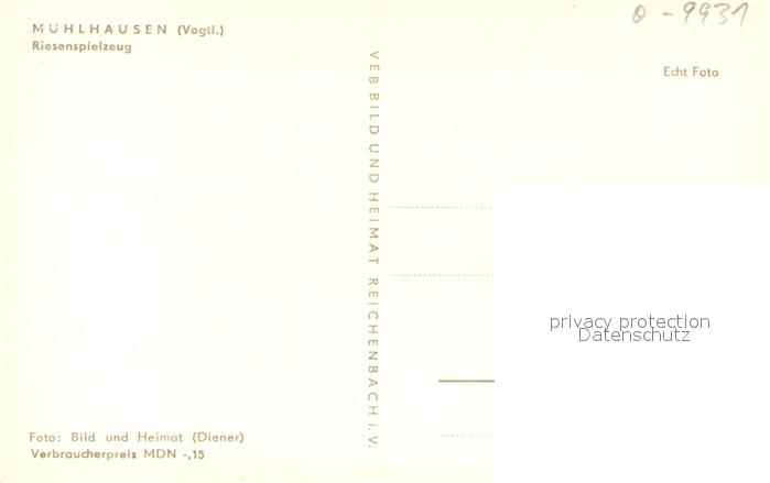 43346414 Muehlhausen Vogtland Riesenspielzeug postalisch nicht gelaufen Erhaltung siehe scans [KathaD81] KatCode: 11110014178050