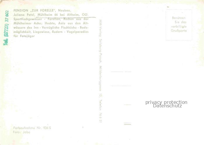 74100344 Muehlheim Altheim Oberoesterreich AT Pension zur Forelle Gastraum Fremdenzimmer Partie am Fluss postalisch nicht gelaufen Erhaltung siehe scans [FriedD77] KatCode: 11390311040401