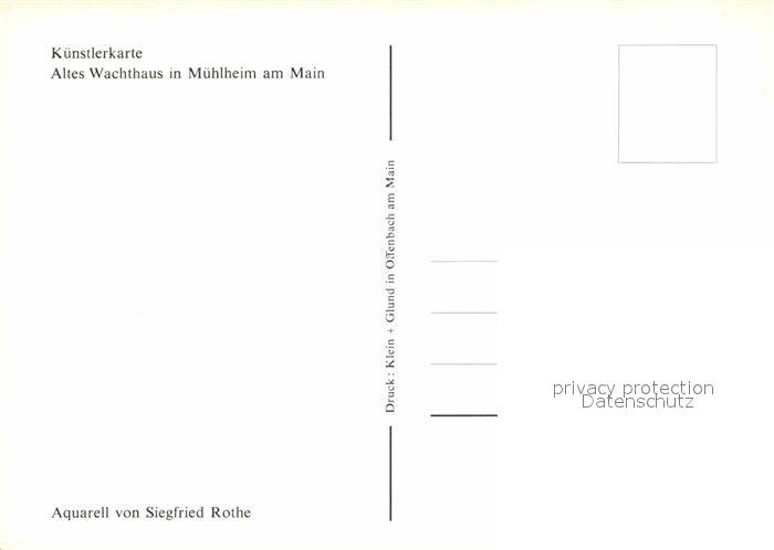 72620622 Muehlheim Main Altes Wachthaus Kuenstlerkarte postalisch nicht gelaufen Erhaltung siehe scans [LiesaD40] KatCode: 11110006438008